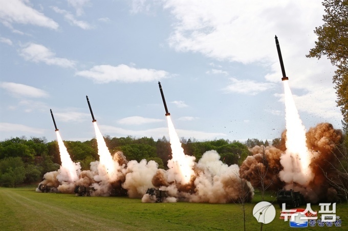 | 북한이 22일 오전 8시10분 경 동북 방향으로 단거리 탄도미사일을 발사했다고 합동참모본부가 밝혔다. 사진은 북한의 단거리 탄도미사일 발사 장면, [사진=조선중앙통신] 2025.10.22 gomsi@newspim.com |