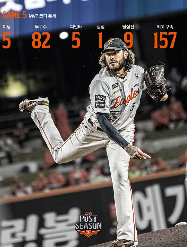 다음은 폰세 차례였다. 폰세는 5회 디아즈를 삼진으로 잡아낸 뒤 더그아웃으로 향하면서 1루 쪽 홈 팬들을 향해 큰 세리머니로 환호를 끌어냈다. 승부에 집착한 나머지 보인 과도한 세리머니가 마음에 걸렸을까. 폰세는 다음날인 25일 한화 구단 유튜브 채널을 통해 공개된 영상에서 이에 대해 한국식으로 고개를 숙였다.