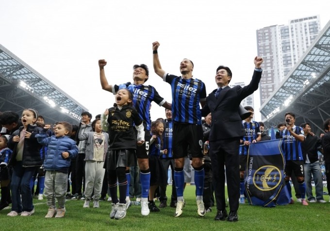 윤정환 감독이 이끄는 인천은 26일 인천축구전용경기장에서 열린 K리그2 2025 36라운드 홈 경기에서 경남FC를 3-0으로 완파했다. 이날 승리로 승점 77을 만든 인천은 남은 3경기와 관계없이 2위 수원 삼성(승점 67)과의 격차를 10점으로 벌리며 조기 우승을 확정했다.