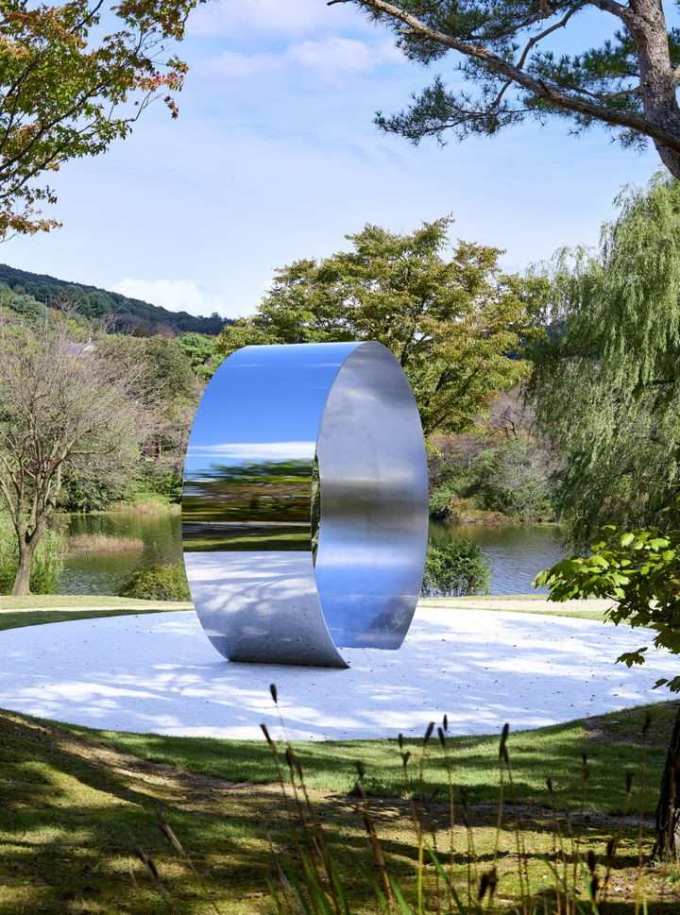 | [서울=뉴스핌]이영란 미술전문기자=이우환 '관계항–만남' 2025. 스테인리스 스틸, 자연석, 자갈. 스테인리스 스틸 Ø500 x 200cm ©Lee Ufan 사진: 김상태, 이미지: 호암미술관 제공. 2025.10.27 art29@newspim.com |