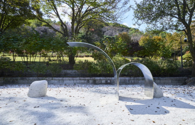 '희원' 건너편의 호암미술관과 너른 호수가 한눈에 내려다보이는 얕은 구릉지 산책로인 '옛돌정원'에서는 철과 돌이라는 문명과 자연이 만나 이루어진 3점의 대형 신작이 자리를 잡았다.