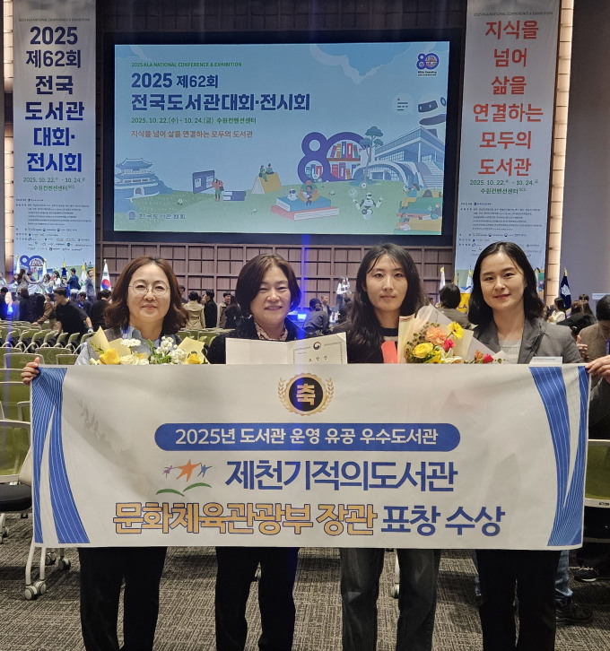 [제천=뉴스핌] 조영석 기자 =충북 제천기적의도서관은 제62회 전국도서관대회에서 '2025년 도서관 운영 유공 우수도서관'으로 선정돼 문화체육관광부 장관상을 수상했다고 27일 밝혔다.