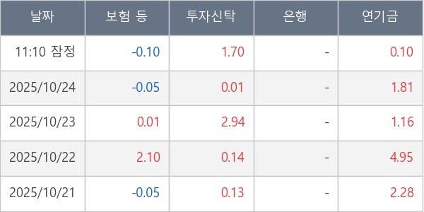 [표] 주요 기관별 순매매량 (단위 만주)
