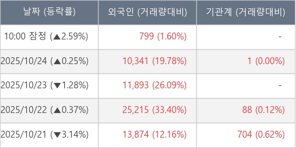 [표] 외국인ㆍ기관 순매매량 (단위 주)