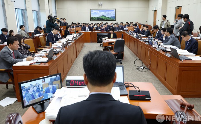 [서울=뉴스핌] 정일구 기자 = 27일 서울 여의도 국회 기후에너지환경노동위원회에서 경제사회노동위원회 등에 대한 국정감사가 열리고 있다. 2025.10.27 mironj19@newspim.com