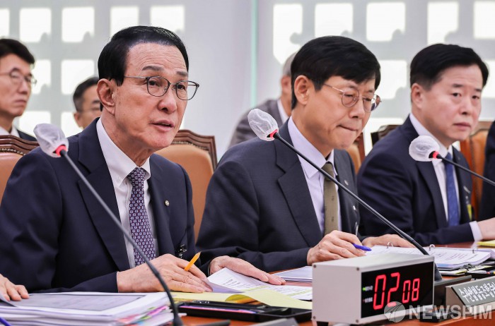 [서울=뉴스핌] 윤창빈 기자 = 노동진 수산업협동조합중앙회장이 27일 서울 여의도 국회에서 열린 농림축산식품해양수산위원회의 수협중앙회 등에 대한 국정감사에서 의원 질의에 답하고 있다. 2025.10.27 pangbin@newspim.com