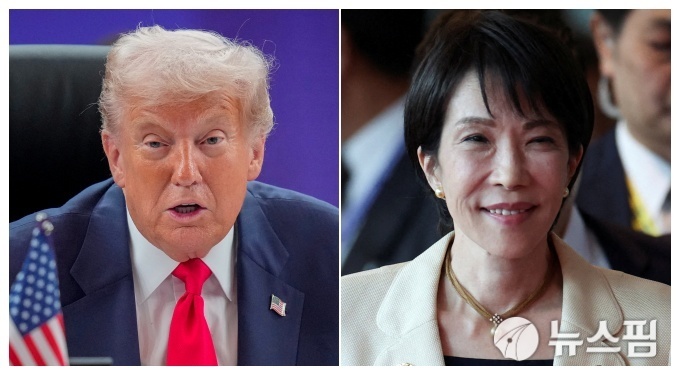 | 도널드 트럼프 미국대통령(왼쪽)과 다카이치 사나에 일본 총리. [사진=로이터 뉴스핌] |