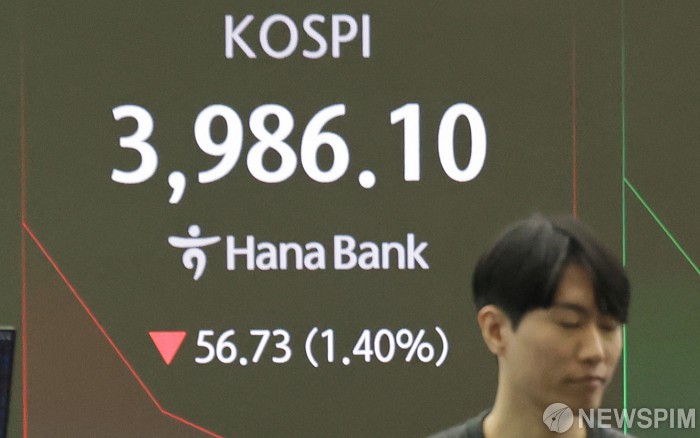 [서울=뉴스핌] 양윤모 기자 = 28일 오전 코스피가 전장 종가보다 56.73 포인트(1.40%) 하락하며 3986.10으로, 코스닥은 0.77 포인트(0.09%) 하락한 901.93으로 장을 시작한 가운데, 서울 중구 하나은행 딜링룸에서 직원들이 업무를 보고 있다. 서울외환시장에서 달러/원 환율은 전장 대비 0.60원 상승한 1432.30원에 거래를 시작했다. 2025.10.28 yym58@newspim.com