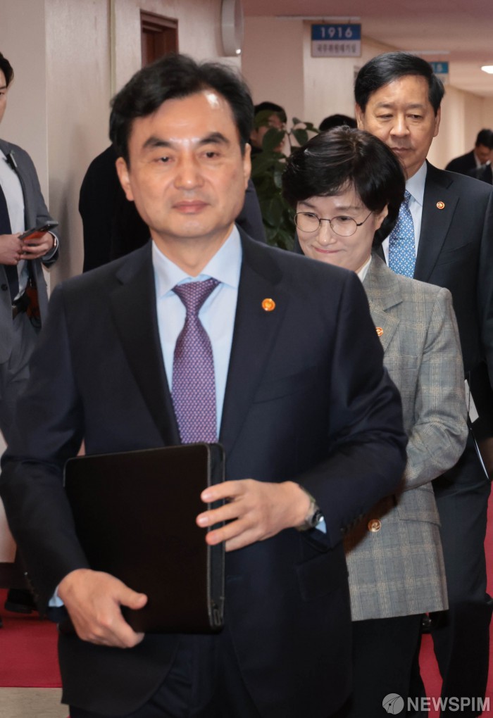 [서울=뉴스핌] 이길동 기자 =안규백 국방부 장관이 28일 서울 종로구 정부서울청사에서 열린 국무회의에 참석하고 있다. 2025.10.28 gdlee@newspim.com