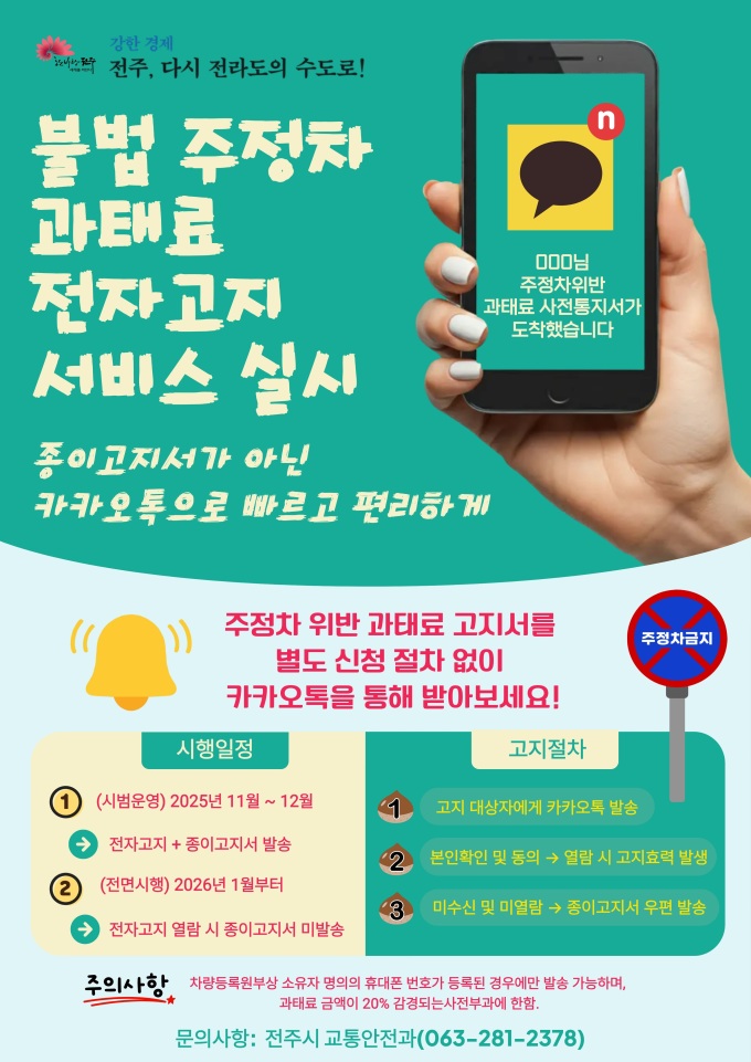 | 전주시, 주정차 과태료 전자고지 서비스 전환[사진=전주시] 2025.10.28 lbs0964@newspim.com |