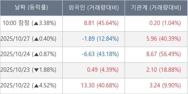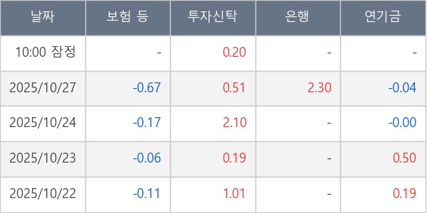 [표] 주요 기관별 순매매량 (단위 만주)