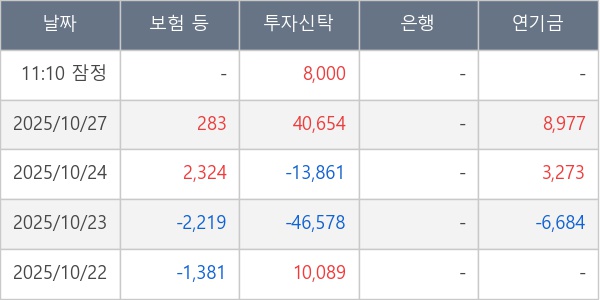 ※ 사모펀드 등 일부 기관의 순매매량은 표시되지 않음