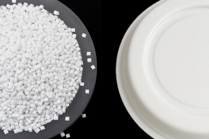 | 롯데케미칼 접착성 소재(왼쪽) 및 식품 포장용기(오른쪽) [사진=롯데케미칼] |