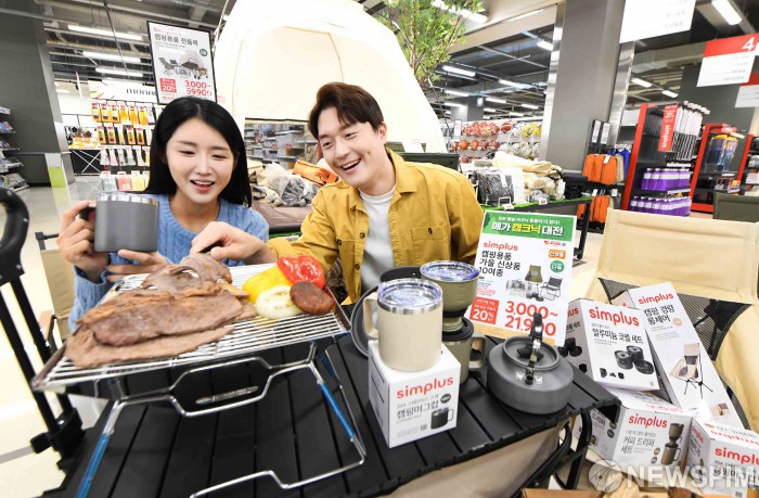 [서울=뉴스핌] 홈플러스가 28일 ‘심플러스 캠핑상품’ 10여종을 새로 출시하며 가을 캠핑 수요 잡기에 나섰다. 접이식 체어, 경량롱체어, 캠핑 머그컵, 접이식 화로대 등 새로 선보이는 가을 캠핑상품들은 최소 3,000원에서 21,9000원까지 최저가 가성비에 감성을 더한 제품이다. [사진=홈플러스] 2025.10.28 photo@newspim.com