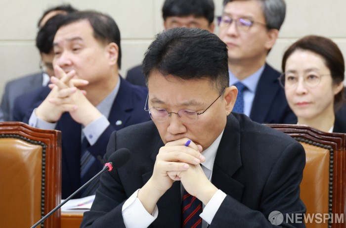 [서울=뉴스핌] 김학선 기자 = 정익중 아동권리보장원장이 28일 서울 여의도 국회 보건복지위원회에서 열린 한국노인인력개발원, 한국사회보장정보원 등에 대한 국정감사에서 생각에 잠겨 있다. 2025.10.28 yooksa@newspim.com
