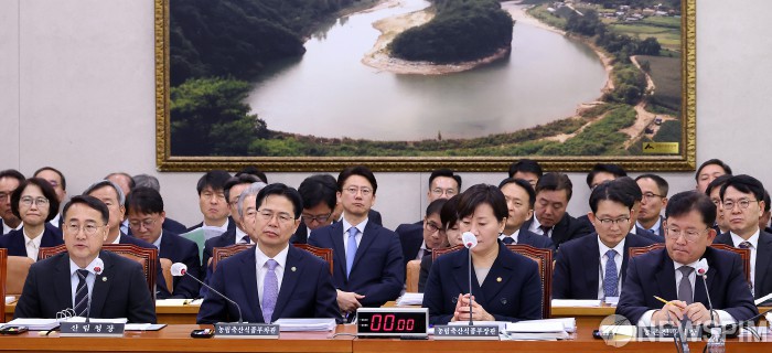 [서울=뉴스핌] 정일구 기자 = 김인호 산림청장(왼쪽부터), 강형석 농림축산식품부 차관, 송미령 장관, 이승돈 농촌진흥청장이 28일 서울 여의도 국회 농림축산식품해양수산위원회에서 열린 농림축산식품부 등에 대한 종합감사에 출석해 있다. 2025.10.28 mironj19@newspim.com