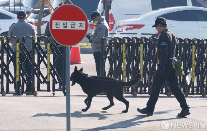 [경주=뉴스핌] 윤창빈 기자 = 29일 한미정상회담이 열리는 경북 경주시 국립경주박물관에서 경호 인력들이 행사장을 점검하고 있다. 2025.10.29 pangbin@newspim.com