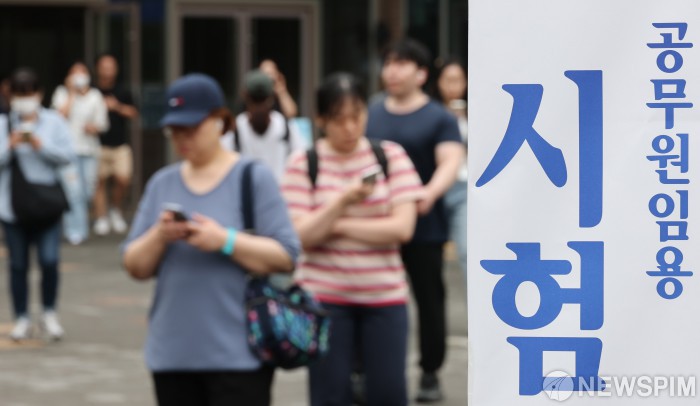 | 2025년도 지방공무원 9급 공채·경채 필기시험이 실시된 지난 6월 21일 서울 강서구 마곡하늬중학교에서 시험을 마친 수험생들이 시험장을 나서고 있다[사진=뉴스핌DB] |