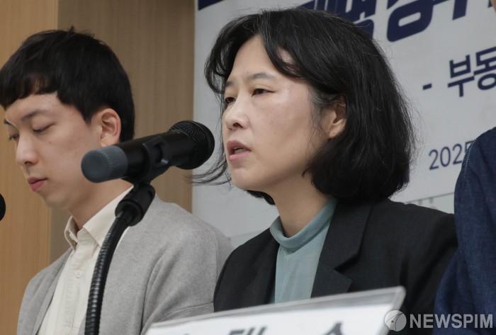 [서울=뉴스핌] 양윤모 기자 = 경실련이 29일 오전 서울 종로구 경실련 강당에서 'SH·GH·LH 매입임대주택 실태 분석결과 발표' 기자회견을 진행했다. 행사에는 이주현 경실련 부동산국책사업팀 간사,조정흔 경실련 토지주택위원장(감정평가사),정택수 경실련 부동산국책사업팀 부장이 참석했다. 2025.10.29 yym58@newspim.com
