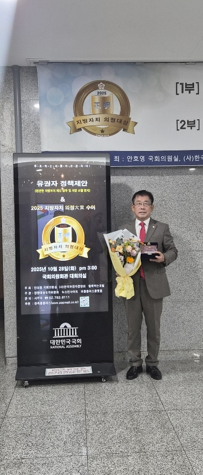 한국유권자중앙회가 주최한 이번 시상식은 완전한 지방자치 제도 정착과 지방소멸 방지를 목표로 지역사회 발전과 주민 복리 증진에 기여한 지방의원들을 선정해 수여했다.