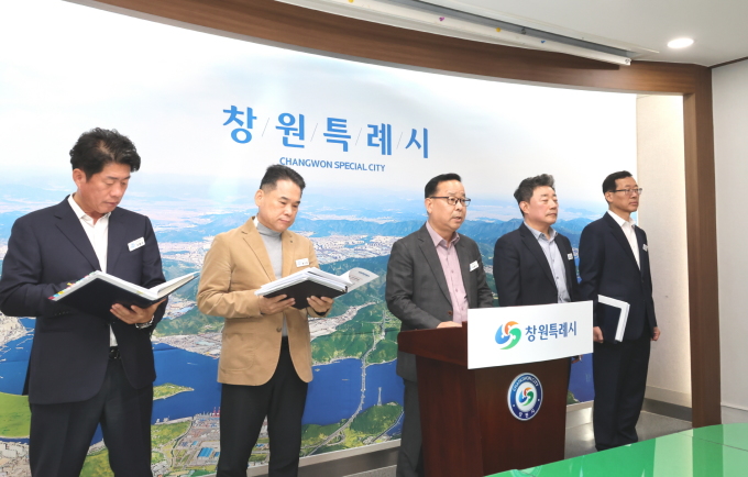 이종근 경남 창원시 교통건설국장(가운데)이 29일 오전 시청 프레스센터에서 자금난으로 운영 중단 우려가 제기됐던 팔룡터널 문제 해결과 관련해 브리핑을 하고 있다. [사진=창원시] 2025.10.29