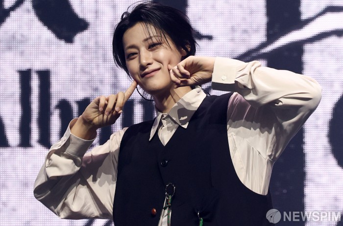 [서울=뉴스핌] 최지환 기자 = 그룹 위아이(WEi) 멤버 유용하가 29일 오후 서울 광진구 예스24라이브홀에서 열린 미니8집 'Wonderland' 발매 기념 미디어 쇼케이스에서 포즈를 취하고 있다. 위아이의 이번 미니앨범은 함께하면 근심도, 걱정도 없이 함께라 즐겁고 행복한 마음을 원더랜드에 빗댄 메시지를 5개 트랙에 담아냈다. 2025.10.29 choipix16@newspim.com