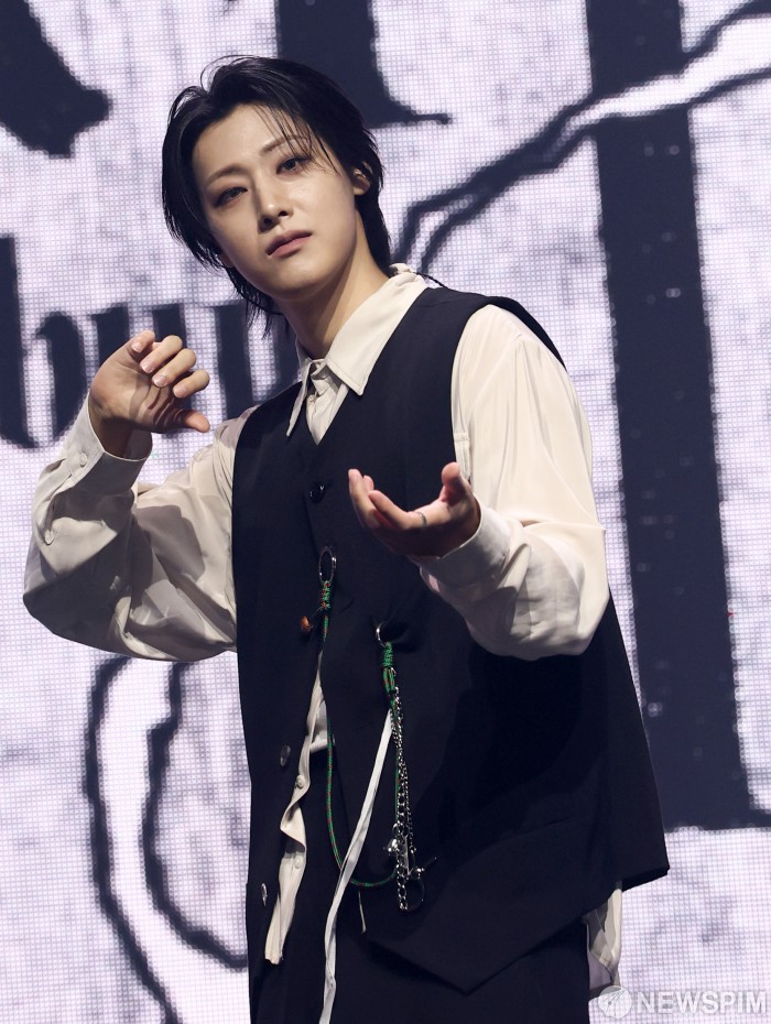 [서울=뉴스핌] 최지환 기자 = 그룹 위아이(WEi) 멤버 유용하가 29일 오후 서울 광진구 예스24라이브홀에서 열린 미니8집 'Wonderland' 발매 기념 미디어 쇼케이스에서 포즈를 취하고 있다. 위아이의 이번 미니앨범은 함께하면 근심도, 걱정도 없이 함께라 즐겁고 행복한 마음을 원더랜드에 빗댄 메시지를 5개 트랙에 담아냈다. 2025.10.29 choipix16@newspim.com