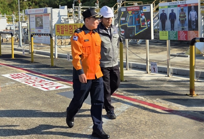 [대전=뉴스핌] 김수진 기자 = 대전소방본부는 29일 대한송유관공사 대전지사를 방문해 대량 위험물 저장시설에 대한 안전관리 실태를 점검했다고 밝혔다. 이날 김문용 대전소방본부장은 관계자들과 함께 위험물 저장탱크 주변 잠재 위험요소와 자동소화설비 유지관리 상태를 확인하고 관계자들에게 철저한 안전관리를 당부했다. 김문용 본부장은 "사소한 부주의가 대형화재로 이어질 수 있는 만큼 세심한 관리와 철저한 대비가 필요하다"고 강조했다. [사진=대전소방본부] nn0416@newspim.com