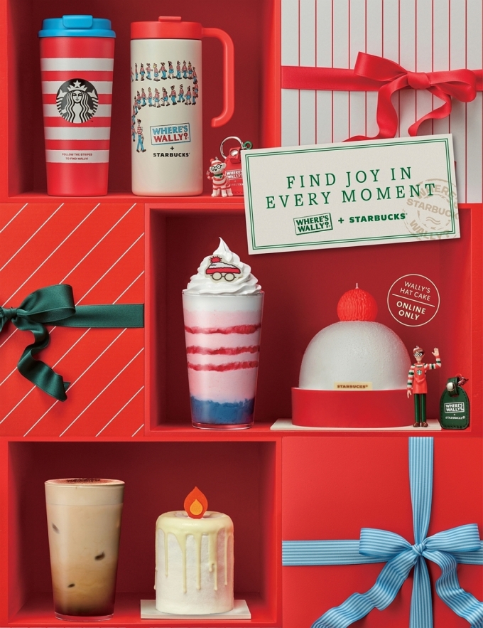 겨울 프로모션 음료 및 푸드 구매 고객 대상으로 '월리를 찾아라' 직소 퍼즐 세트도 한정 판매한다. 퍼즐은 스타벅스 안에 숨은 월리를 찾으며 즐거운 시간을 보낼 수 있도록 디자인됐다. 콜라보레이션을 기념해 특별히 준비한 '월리의 모자 케이크'는 카카오톡 선물하기에서 한정 수량으로 만나볼 수 있다. 스트로베리와 요거트 맛의 2단 아이스밀크 홀케이크로, 구매 시 털실 모양의 캔들과 스트라이프 리유저블 백을 함께 증정해 연말 선물용으로 제격이다. 이 밖에도 머그잔, 텀블러 등 다양한 콜라보레이션 상품이 출시돼 눈길을 끈다.