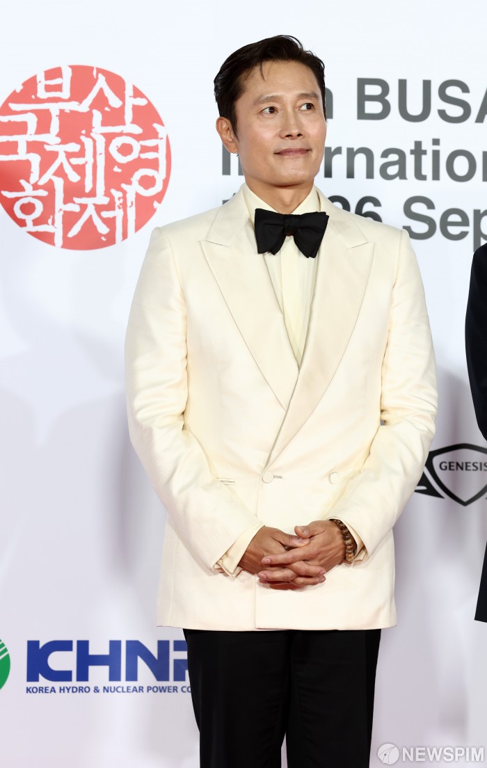 | [부산=뉴스핌] 최지환 기자 = '어쩔수가없다' 주연을 맡은 배우 이병헌이 17일 오후 부산 해운대구 영화의전당에서 열린 제30회 부산국제영화제(BIFF) 개막식 레드카펫 행사에서 포즈를 취하고 있다. 2025.09.17 choipix16@newspim.com |