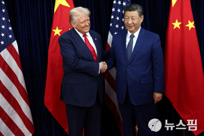 | 도널드 트럼프 미국 대통령과 시진핑 중국 국가주석이 29일 부산에서 만나 악수하고 있다. [사진=로이터 뉴스핌] |