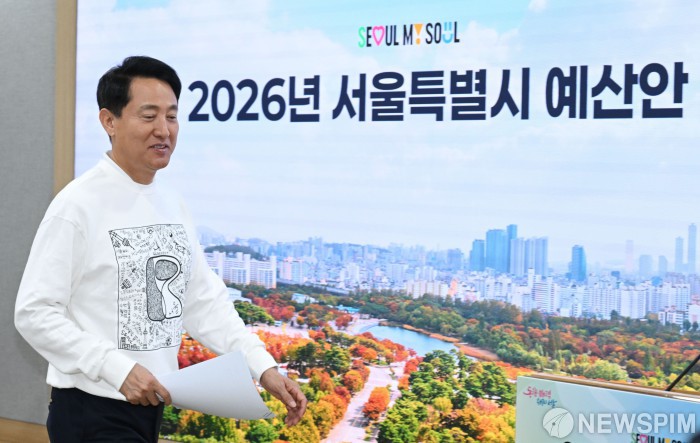 [서울=뉴스핌] 양윤모 기자 = 오세훈 서울시장이 30일 오전 서울 중구 서울시청에서 개최된 '2026년 서울특별시 예산안' 관련 브리핑을 위해 입장하고 있다. 2025.10.30 yym58@newspim.com