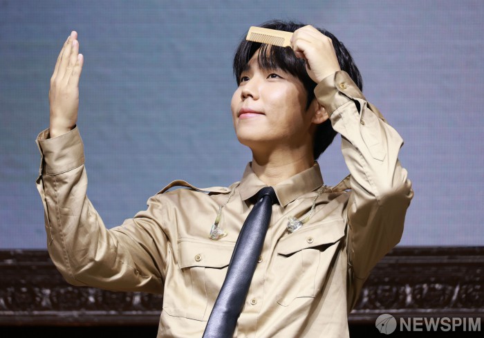 [서울=뉴스핌] 김학선 기자 = 가수 정승환이 30일 서울 서대문구 CGV 신촌아트레온에서 열린 '사랑이라 불린' 발매 기념 쇼케이스에서 포즈를 취하고 있다. '사랑이라 불린'은 정승환이 약 7년 만에 선보이는 정규 앨범으로 더블 타이틀곡 '앞머리'와 '행복은 어려워'를 포함해 총 10곡이 수록됐다. 2025.10.30 yooksa@newspim.com