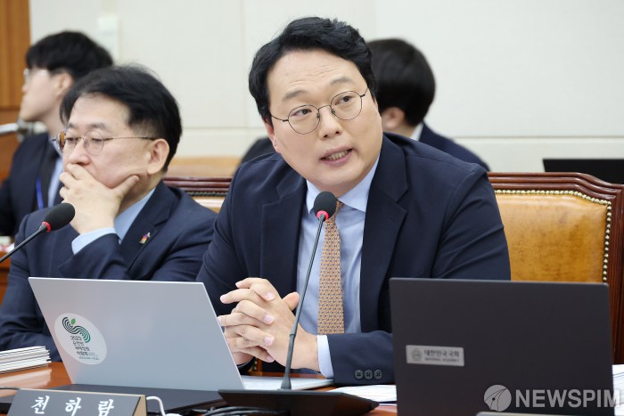 | [서울=뉴스핌] 정일구 기자 = 천하람 개혁신당 원내대표가 27일 서울 여의도 국회 기획재정위원회에서 열린 한국수출입은행 등에 대한 국정감사에서 질의하고 있다. 2025.10.27 mironj19@newspim.com |