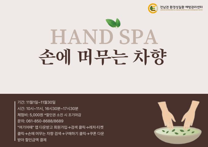 | ' 2025 한국 웰니스관광 온(溫)라인 페스타' 녹차 핸드스파 홍보물 [사진=보성군] 2025.10.30 chadol999@newspim.com |