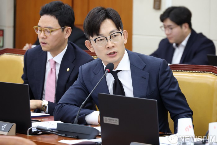 [서울=뉴스핌] 정일구 기자 = 박충권 국민의힘 의원이 30일 서울 여의도 국회 과학기술정보방송통신위원회에서 열린 방송미디어통신위원회 등에 대한 종합감사에서 질의하고 있다. 2025.10.30 mironj19@newspim.com