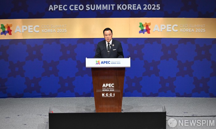 [서울=뉴스핌] 아누틴 찬위라꾼 태국 총리가 30일 오후 경북 경주시 경주예술의전당에서 열린 아시아태평양경제협력체(APEC) 정상회의 최고경영자(CEO) 써밋 특별세션에서 연설을 하고 있다. [사진=APEC 2025 KOREA & 연합뉴스] 2025.10.30 photo@newspim.com