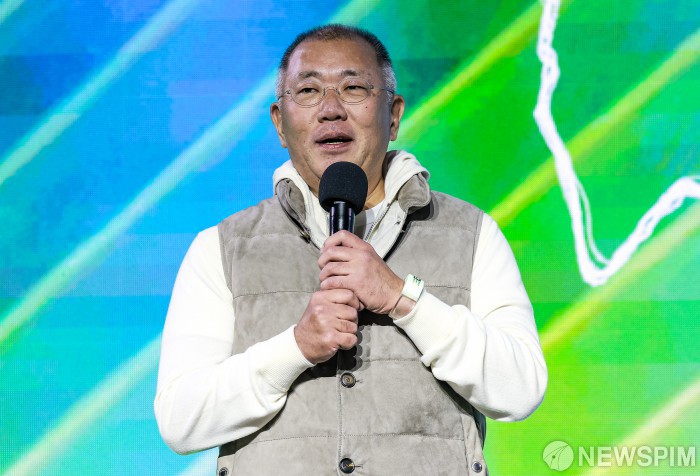[서울=뉴스핌] 김승현 이성화 기자 = 정의선 현대차그룹 회장이 "엔비디아 칩이 차로 들어오고 로보틱스로 들어와서 더 많이 협력 할 것 같다"고 말했다.