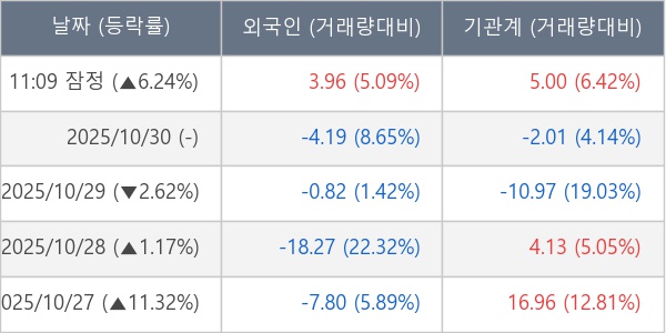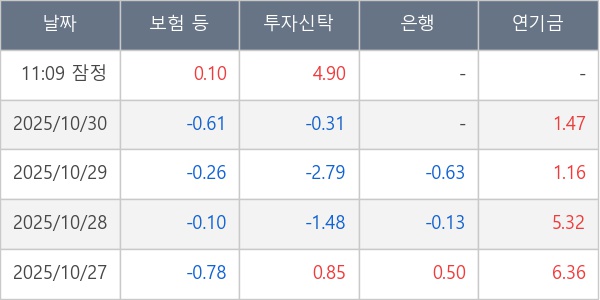 [표] 주요 기관별 순매매량 (단위 만주)