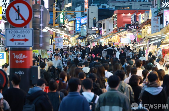 [서울=뉴스핌] 김학선 기자 = 핼러윈 데이인 31일 인파 밀집 지역인 서울 마포구 홍대 거리가 시민과 외국인 관광객들로 붐비고 있다. 2025.10.31 yooksa@newspim.com