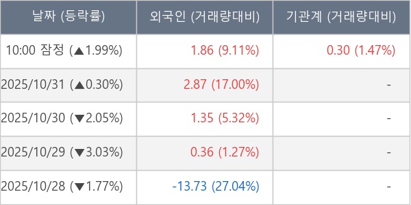 [표] 주요 기관별 순매매량 (단위 만주)