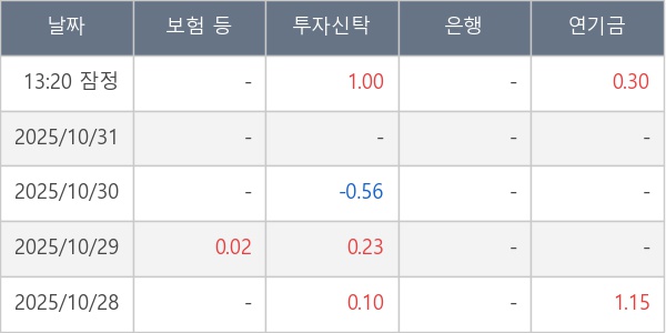 [표] 주요 기관별 순매매량 (단위 만주)