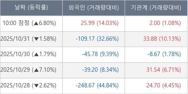 [표] 주요 기관별 순매매량 (단위 만주)