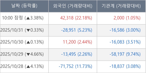 [표] 외국인ㆍ기관 순매매량 (단위 주)
