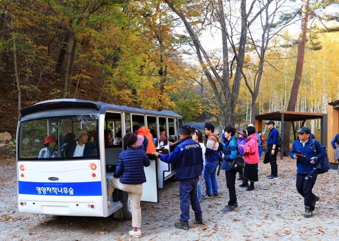 [영양=뉴스핌] 남효선 기자 = '국제밤하늘공원'으로 이름난 경북 영양군의 '명품 숲'인 '영양 자작나무숲'이 온통 가을빛으로 물들고 있다. '국유림 명품 숲'으로 선정된 '영양 죽파리 자작나무숲'은 축구장 40개 크기 규모의 전국에서 가장 큰 자작나무 숲으로 꼭 가봐야 할 트레킹 코스로 각광받고 있다. 특히 1코스는 1.49km, 2코스는 1.52km의 완만한 경사로를 이뤄 초보 산악인들, 가족 단위 방문객들이 즐겨 찾는 트레킹 숲길로 이름 높다. 등산로를 따라 전망대로 올라가면 고도 800m를 훌쩍 넘는 검마산 허리에 순백의 자세로 하늘을 받치고 있는 자작나무숲이 장관을 펼친다. 11월 첫 주말, 갑작스럽게 찾아온 추위에도 자작나무숲을 찾은 가족 산행객들의 발길이 이어졌다. 영양군은 '영양 자작나무숲'을 전국 최고의 명품 숲, 생태관광 메카로 조성한다는 계획이다.[사진=영양군] nulcheon@newspim.com