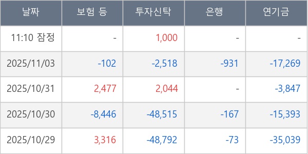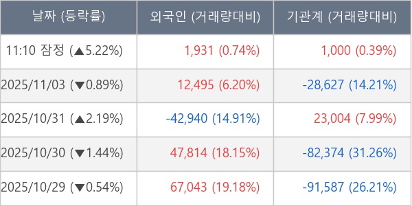 ※ 사모펀드 등 일부 기관의 순매매량은 표시되지 않음