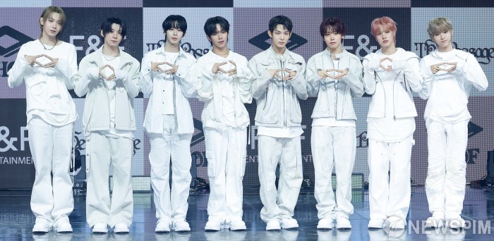 [서울=뉴스핌] 류기찬 기자 = 보이그룹 아홉(AHOF) 멤버들이 4일 오후 서울 광진구 예스24라이브홀에서 열린 미니2집 'The Passage' 발매 기념 미디어 쇼케이스에서 포즈를 취하고 있다. 타이틀곡인 '피노키오는 거짓말을 싫어해'는 동화 피노키오를 모티브 한 밴드 사운드의 곡으로 변덕과 불안, 흔들림 속에서도 '너'에게만은 솔직하고 싶은 마음을 아홉만의 감성으로 풀어낸 곡이다. 2025.11.04 ryuchan0925@newspim.com