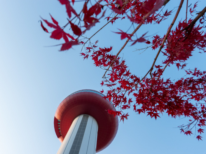[서울=뉴스핌] 최문선 기자 = 예당호전망대 사과 모양의 전망대와 단풍이 어우러진 예당호의 가을 풍경. [사진=한국관광공사] 2025.11.05 moonddo00@newspim.com