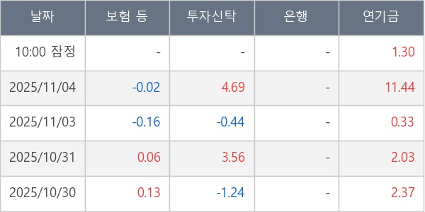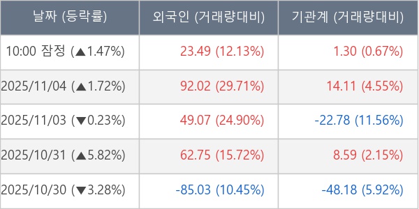 ※ 사모펀드 등 일부 기관의 순매매량은 표시되지 않음