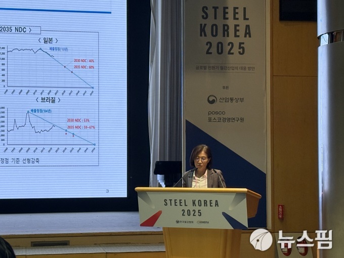 5일 '스틸코리아' 행사에서 산업부문 2035 NDC 주요 과제 및 지원 방안 발표를 맡은 정은미 산업연구원 선임연구위원은 "산업 부문 탈탄소화는 배출을 줄이는 기술 문제가 아니라 공정·연료·전력 조달 전주기의 재설계가 필요한 구조적 변화"라며 "기술만 앞서고 시장·조달 제도가 따라오지 않으면 감축 투자가 지속되기 어렵다"고 말했다.